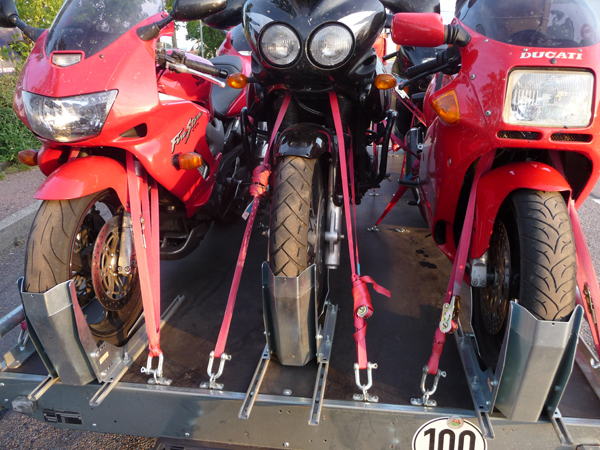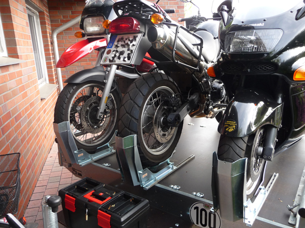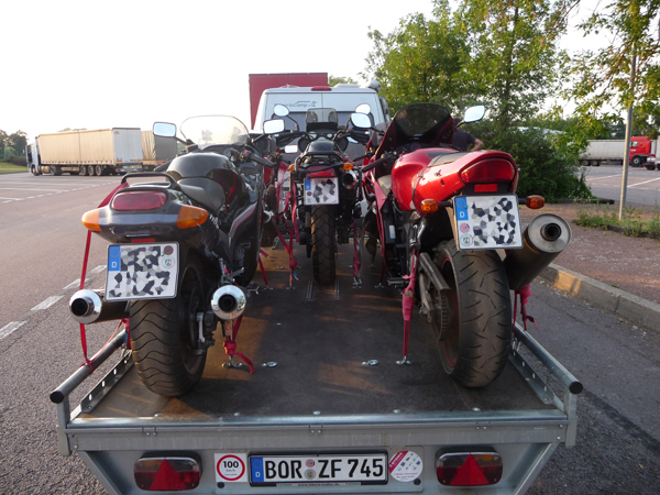 Ich habe Anhänger, die ich speziell für den Motorradtransport umgerüstet habe. Da ich selbst seit Jahren gerne das Motorrad mit auf Reisen nehme, suchte ich nach einer Möglichkeit, mir die eintönigen Autobahnfahrten zu ersparen.